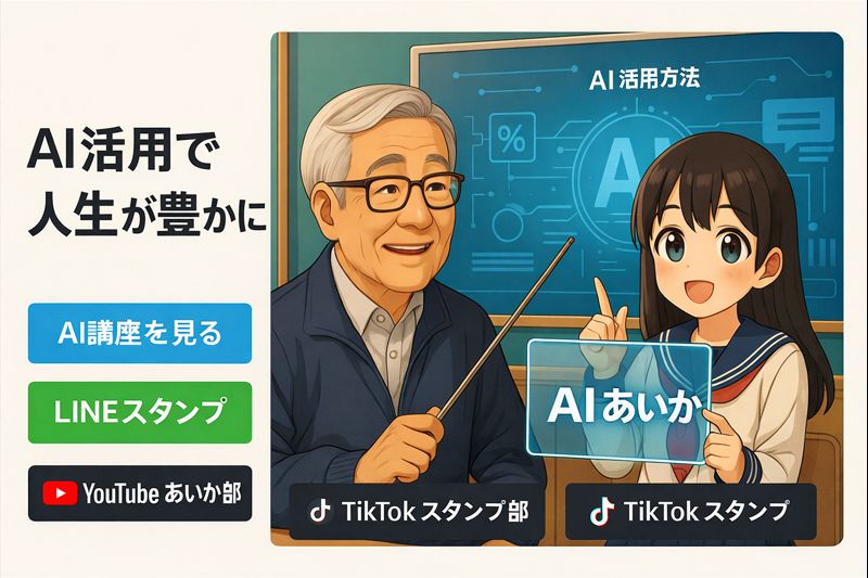 X Facebook はてブ LINE Pinterest コピー 2025.12.272026.01.03 ホーム AI活用・デジタル制作・情報発信を行っています。 ▶ YouTube:AIあいか チャンネル ▶ TikTok:AIあいか スタンプ部